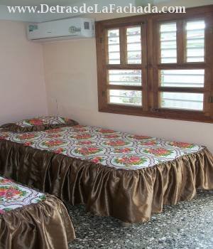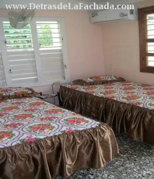 Esta acogedora casa en Cuba alquila dos luminosas y ventiladas habitaciones climatizadas. El primer dormitorio es doble con una cama matrimonial y otra personal, su capacidad es para tres personas. El segundo dormitorio es triple con 2 camasmatrimoniales y una personal, su capacidad es para cinco personas. Cada habitación tiene su baño independiente,aire acondicionado, ventilador, televisión, secador de pelo y teléfono formando parte del mobiliario de las habitaciones.