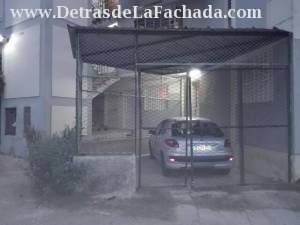 Two entrances from the front, the main one to the living room and from the covered and fenced terrace that is used as a garage with a direct access door to the dining room.