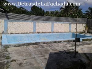 - Piscina de 8 metros de largo por 4 de ancho, con su bañito, la cual empieza bajita y termina onda. Todos los alrededores de la piscina tiene piso nuevo moderno.